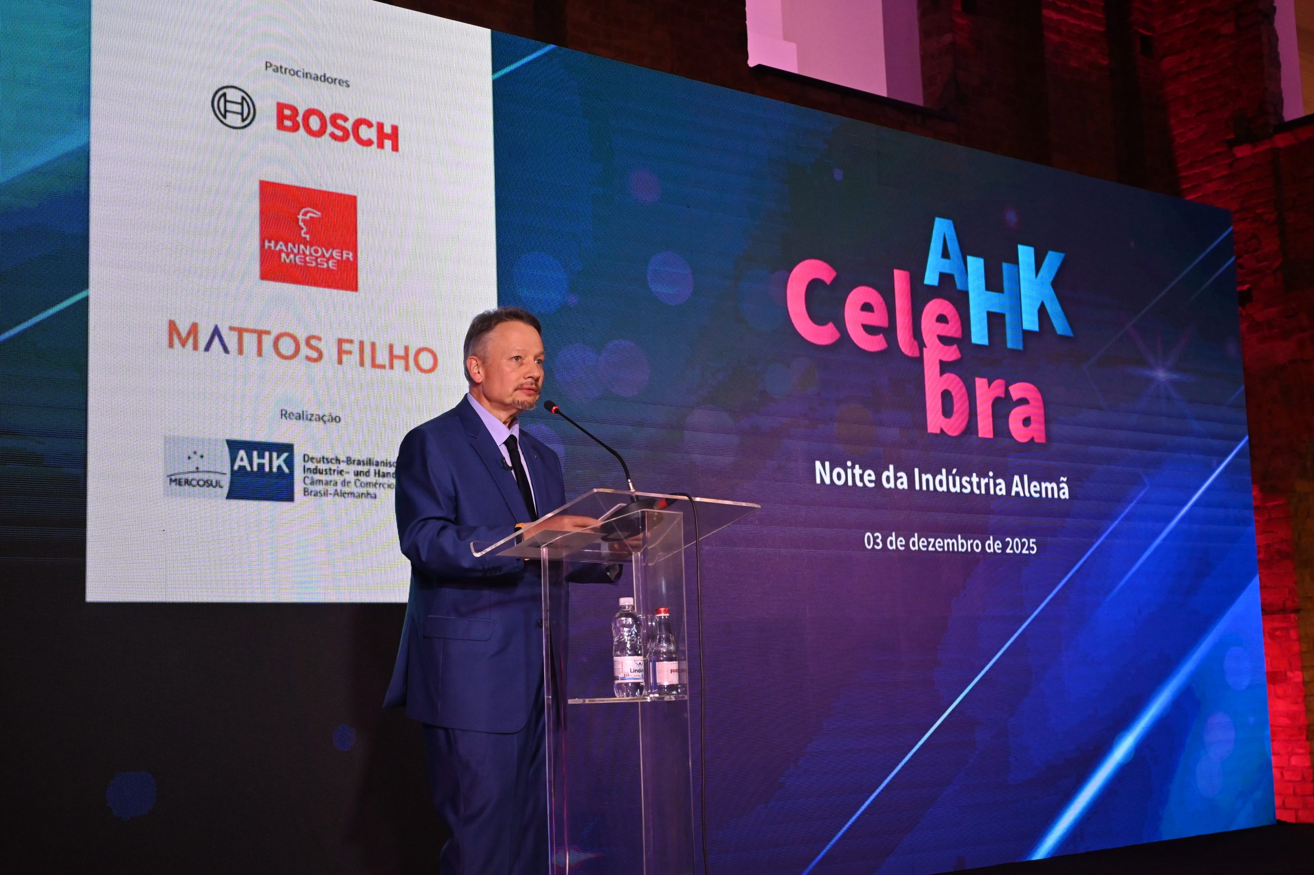 “É uma grande alegria recebê-los neste espaço tão inspirador, a Pinacoteca. Um lugar de memória, de futuro e, acima de tudo, de criatividade – três qualidades que definiram 2025 para todos nós. Vivemos um ano de muita incerteza geopolítica, cadeias de valor em movimento e regras do comércio internacional que mudam mais rápido do que gostaríamos. A boa notícia é: em meio a tudo isso, nossa Câmara não ficou na defensiva”, afirmou Alexander Seitz, Presidente da Câmara Brasil-Alemanha de São Paulo e Chairman Executivo da Volkswagen para a Região América do Sul, em seu discurso de abertura. “O próximo capítulo já está à nossa frente: em 2026, a Câmara Brasil-Alemanha em São Paulo completa 110 anos. Poucas instituições no Brasil podem falar em mais de um século de presença contínua, sempre se reinventando, sem perder a sua essência. Se conseguimos entregar tudo isso em um ano tão desafiador quanto 2025, imaginem o que podemos construir juntos nos próximos anos.”