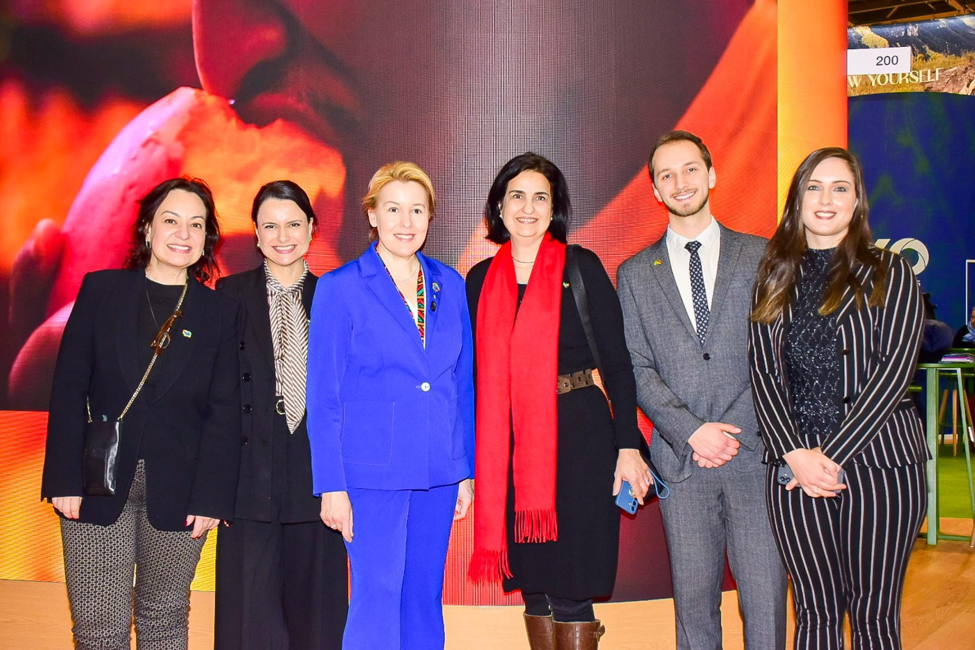 O espaço brasileiro da Embratur também recebeu a visita da Senadora da Alemanha para Assuntos Econômicos, Energia e Empresas Públicas, Franziska Giffey, que foi ao estande com o objetivo de reforçar os laços entre o Brasil e a Alemanha, dar ênfase à importância da indústria do turismo entre os países e reforçar o papel da Embratur no fomento do segmento no exterior, além de destacar a relevância da atuação da AHK São Paulo como representante da economia alemã no Brasil e facilitadora de ações bilaterais estratégicas, como feiras e delegações. Também participaram do encontro Lilás Nascimento, da Gerência de Desenvolvimento de Negócios Estratégicos Visit Brasil Europa na Embratur, Maria Beatriz Harke e Lucas Dereti Rahn, ambos da Embaixada do Brasil em Berlim.