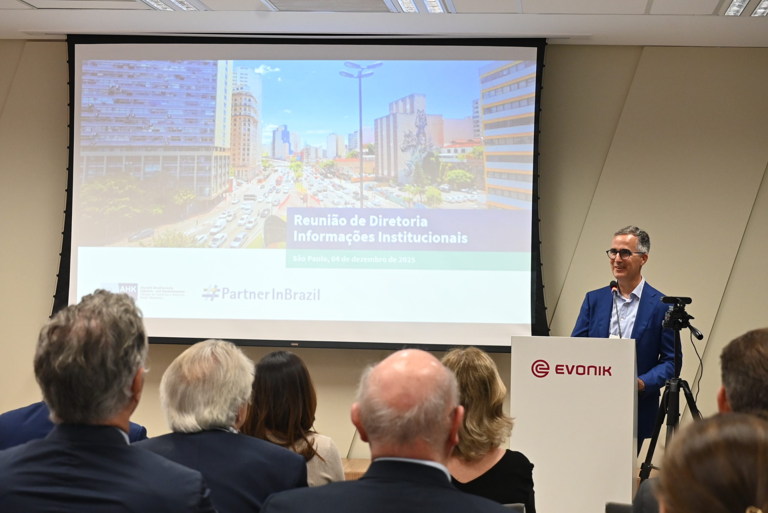 Análises do contexto Brasil-Alemanha sobre acordos econômicos e um panorama do setor químico no Brasil foram os temas centrais da última reunião da Diretoria da Câmara Brasil-Alemanha (AHK São Paulo). O encontro, realizado nesta quinta-feira (4) no escritório da Evonik do Brasil, teve Dr. Hendrik Schönfelder, Vice-Presidente da AHK São Paulo e CEO da Evonik para região América Central e do Sul como anfitrião.