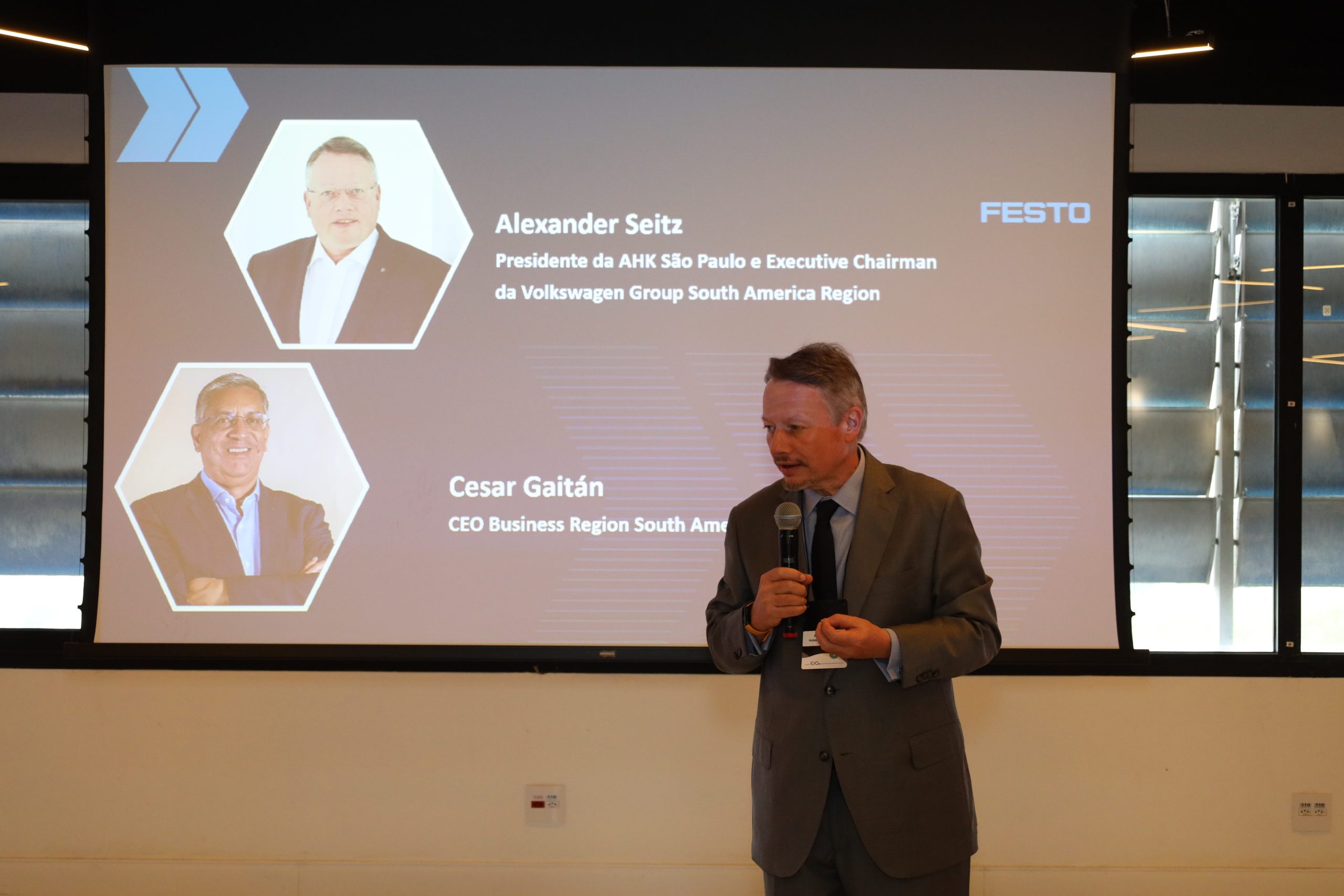 A apresentação de tecnologias e discussões sobre a digitalização da indústria, eficiência energética e integração de sistemas inteligentes em ambientes fabris foram o tópico central da última reunião da Diretoria da Câmara Brasil-Alemanha de São Paulo (AHK São Paulo). O encontro, realizado no Technology Engeneering Center São Paulo da FESTO, teve Cesar Gaitan, Vice-Presidente da Câmara Brasil-Alemanha e CEO Business Regional SAM da FESTO como anfitrião.