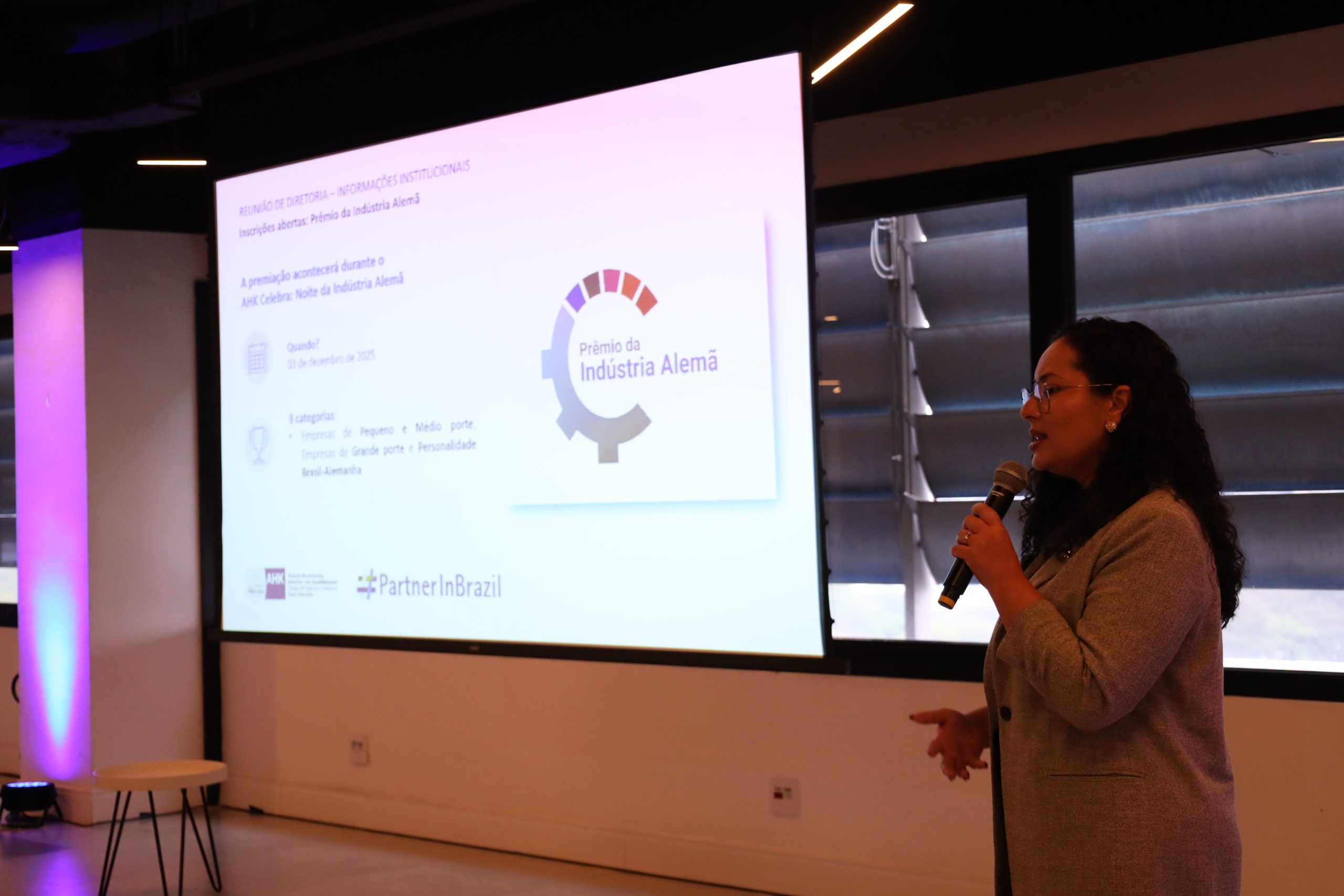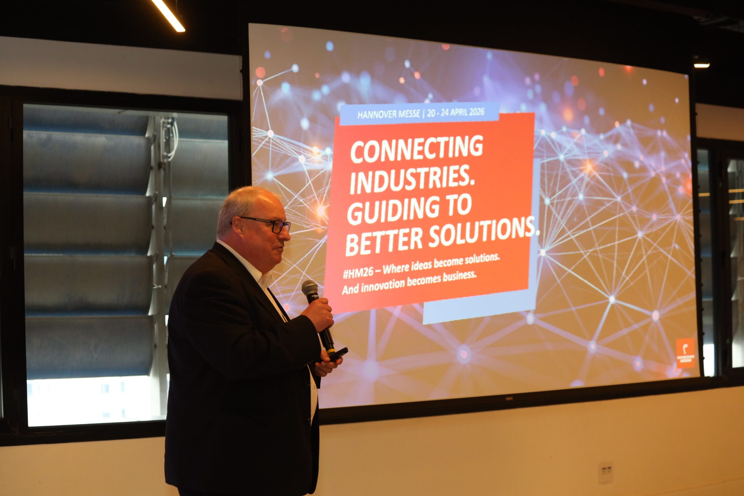 Adicionalmente, Bruno Vath Zarpellon, Diretor Executivo de Desenvolvimento de Negócios da AHK São Paulo, compartilhou informações sobre o pavilhão brasileiro, promovido e subsidiado pela ApexBrasil. O pavilhão contará com ambientes temáticos voltados às diversas necessidades da indústria, como a Transição Energética e Transição Verde Digital, Automação, Inteligência Artificial e Segurança Digital.