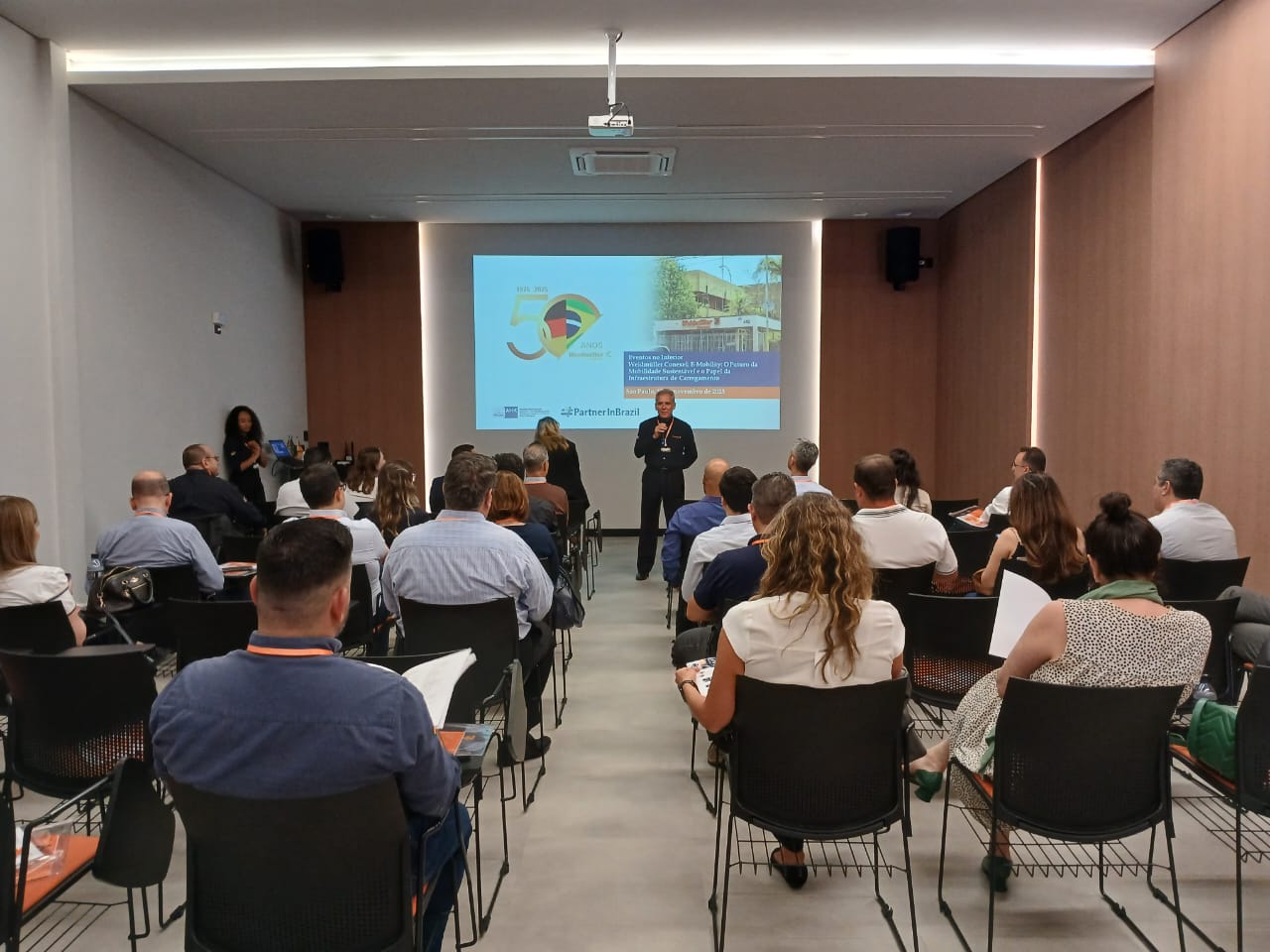 A reunião abordou assuntos que envolvem tendências globais da mobilidade elétrica, como infraestrutura de carregamento, digitalização, impactos na rede e oportunidades para indústria.