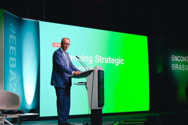 Friedrich Merz, destacou o Brasil como um parceiro fundamental em um mundo cada vez mais desafiador em matéria de acordos comerciais, sejam eles novos ou existentes. “Compartilhamos com o Brasil um interesse fundamental em uma ordem política onde possamos confiar em acordos, nos apoiar em tratados, contribuir para a resolução conjunta de problemas globais e, acima de tudo, resolver conflitos apenas por meios pacíficos”, enfatizou.